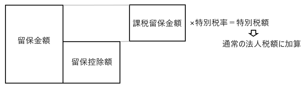 特定同族会社の利益の留保金額が、「留保控除額」を超える場合、その超えた部分の金額(課税留保金額)に特別に法人税が課税されます。