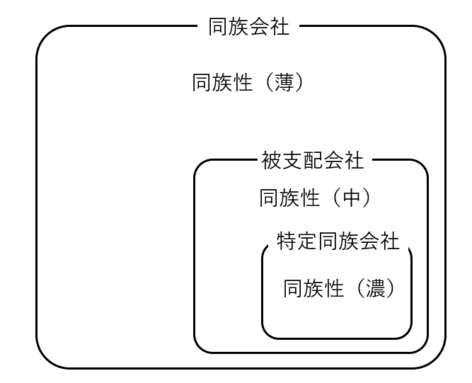 また別の表現をすると「同族会社は被支配会社を内包し、被支配会社は特定同族会社を内包します」。