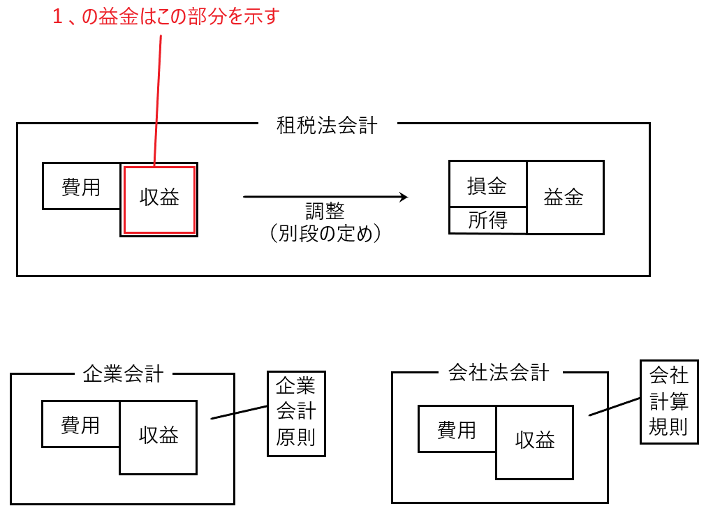 まずは1、の益金とはどの部分を示しているのかを以下の図で確認します。