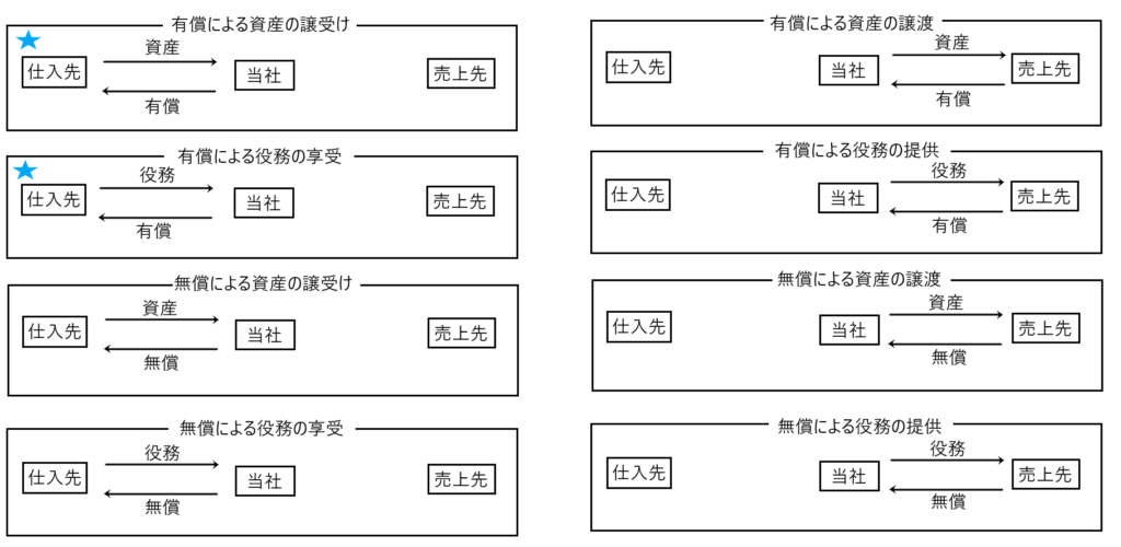 ここでの検討対象とする取引は「有償による資産の譲受け」と「有償による役務の享受」です。