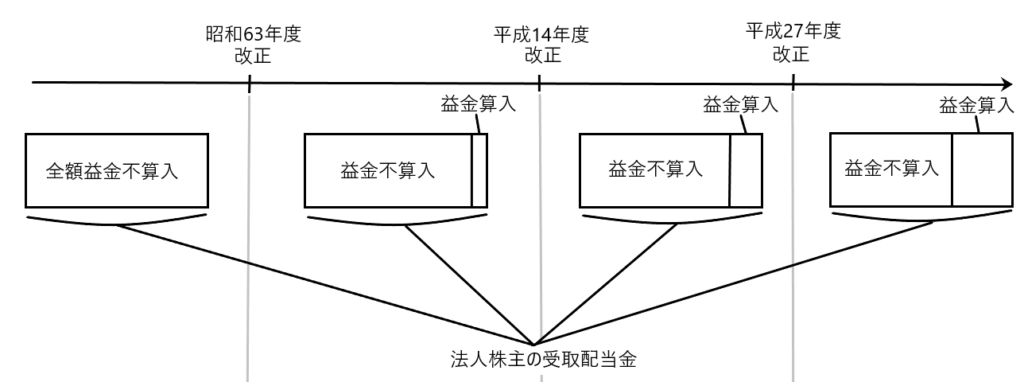 昭和63年度改正前は、法人株主が配当を受けた場合、その全額につき益金不算入が認められていました。