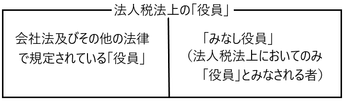 法人税法上の「役員」は会社法及びその他の法律で規定されている「役員」よりもその範囲が広いです。