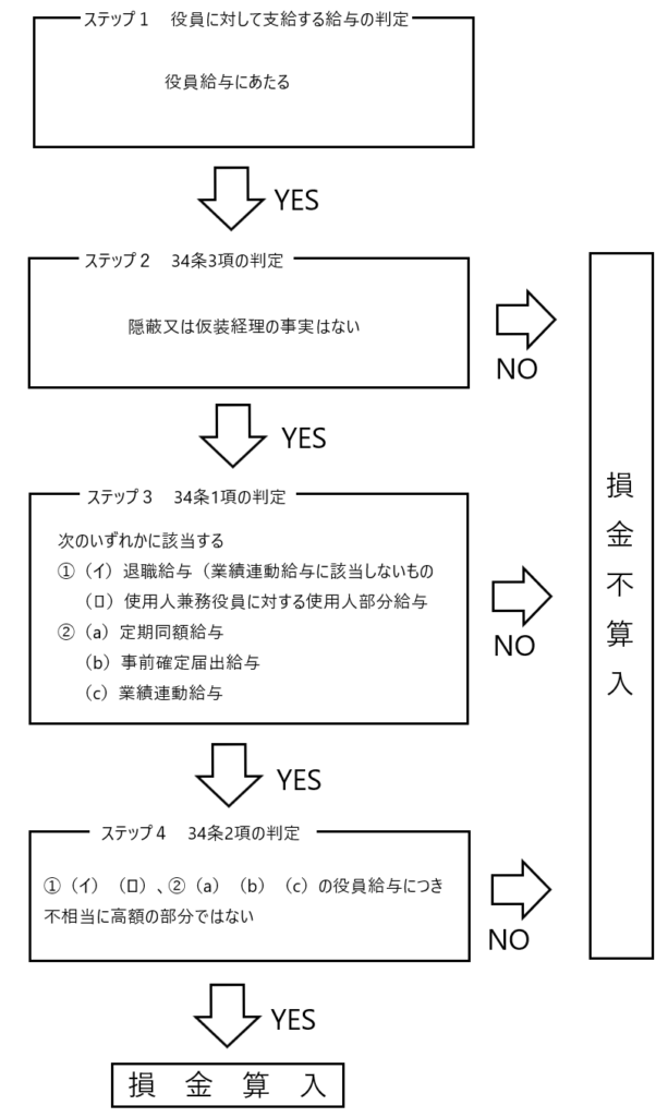 ✔役員給与につき、損金算入の可否を判断するためのフローチャート
