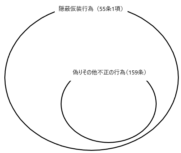 隠蔽仮装行為(55条1項)と偽りその他不正の行為(159条)との関係性