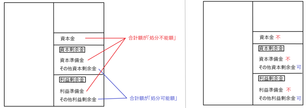 処分可能額(その他資本剰余金+その他利益剰余金)の範囲内でしか分配できない