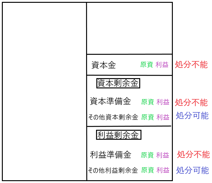 会社法は株主と会社債権者の利害調整を目的としているため、「原資と利益」の区分は重視されず、純資産を「分配不能額と分配可能額」に区分することを重視します。