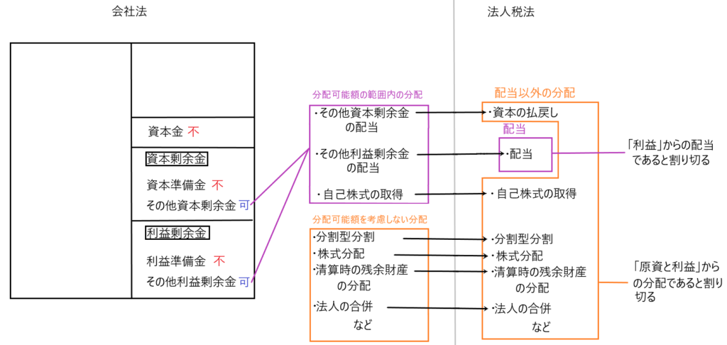 「分配」の種類と法人税法上の「配当と配当以外の分配」の関係性