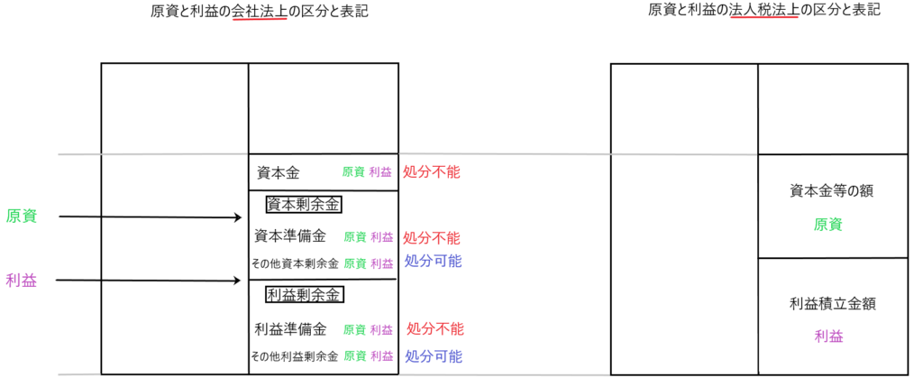 法人に出資された「原資」及び法人が獲得した「利益」は純資産を構成します。そして当該純資産(原資+利益)の区分は会社法と法人税法で異なります。