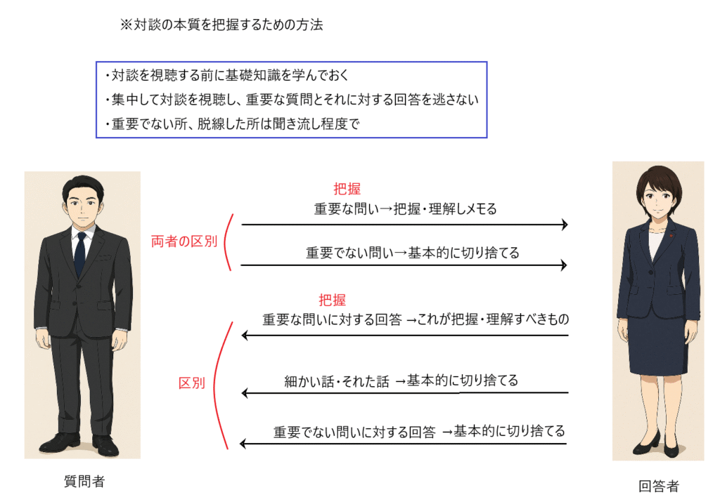 それでは対談を視聴する場合に、その対談における話の本質を把握するために自分ができることは何なのか?、その方法を考えてみました。