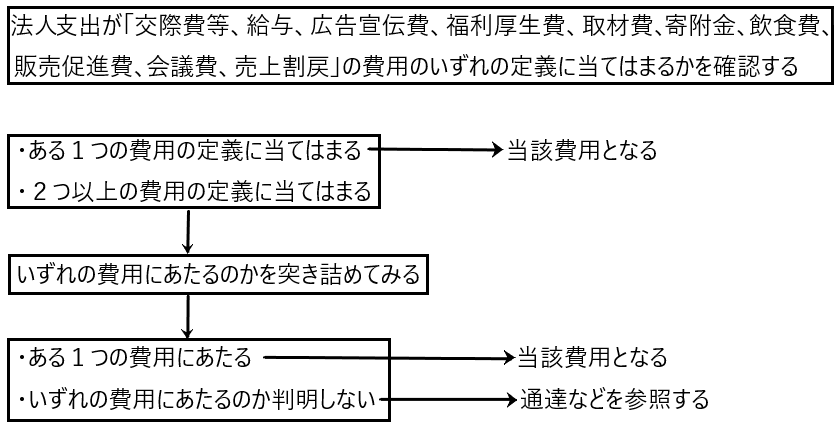 法人支出がいずれの費用にあたるのか分からないとき、いきなり通達を調べてもなかなか答えが判明しないときがあると思います。